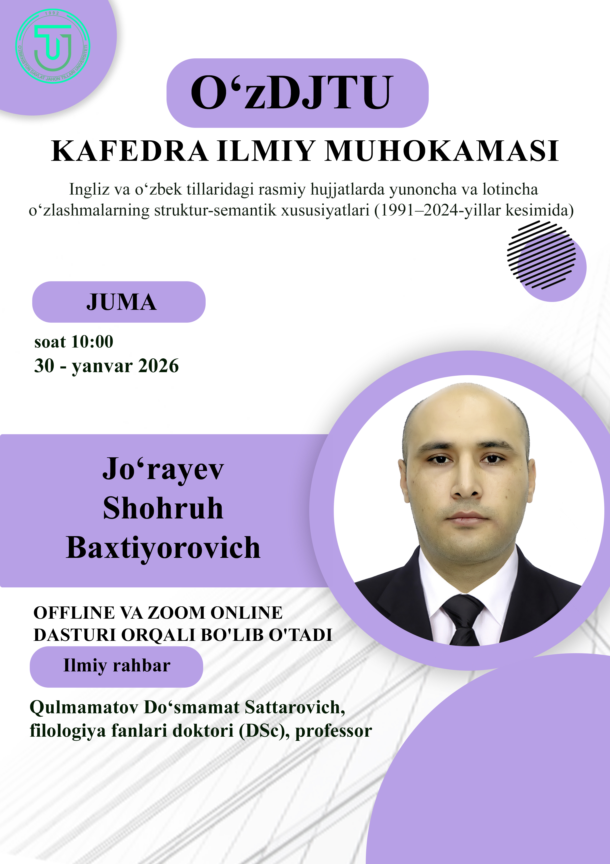 O‘zbekiston davlat jahon tillari universiteti (O‘zDJTU) 1949-yilda Toshkent chet tillari pedagogika instituti nomi bilan faoliyatini boshlagan. Universitet 70 yillik tarixga ega. 1992-yili Toshkent chet tillari pedagogika instituti hamda Respublika Rus tili va adabiyoti instituti birlashib, O‘zbekiston davlat jahon tillari universiteti maqomiga ega bo‘ldi.
