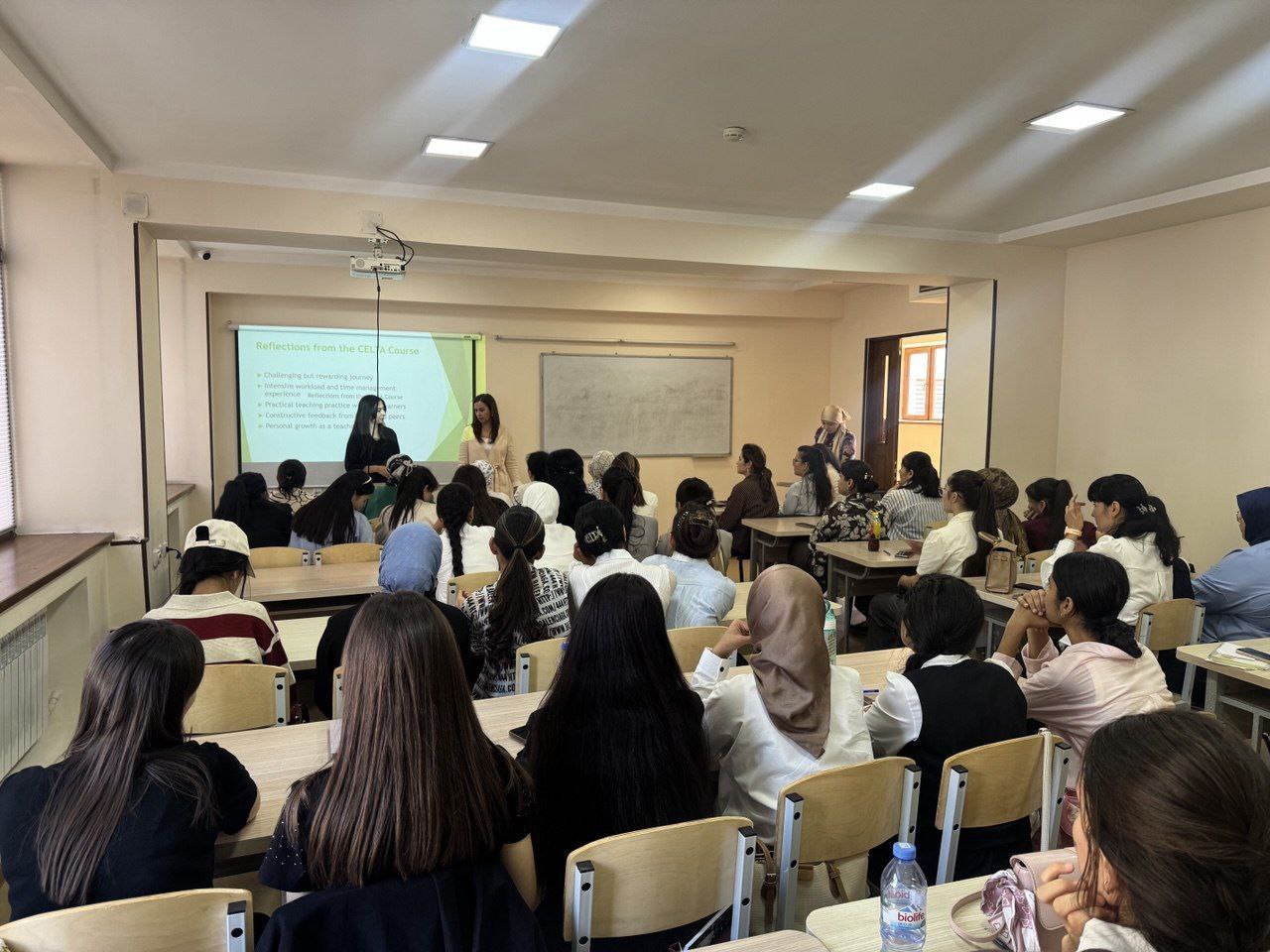 今年9月19日,在英语语言第二学院,英语教学方法学第二教研室的高级讲师泽布尼索·拉马佐诺娃与英语语言理论方面第二教研室的高级讲师费鲁扎·马赫马纳扎罗娃共同举办了一场英语教学大师课。