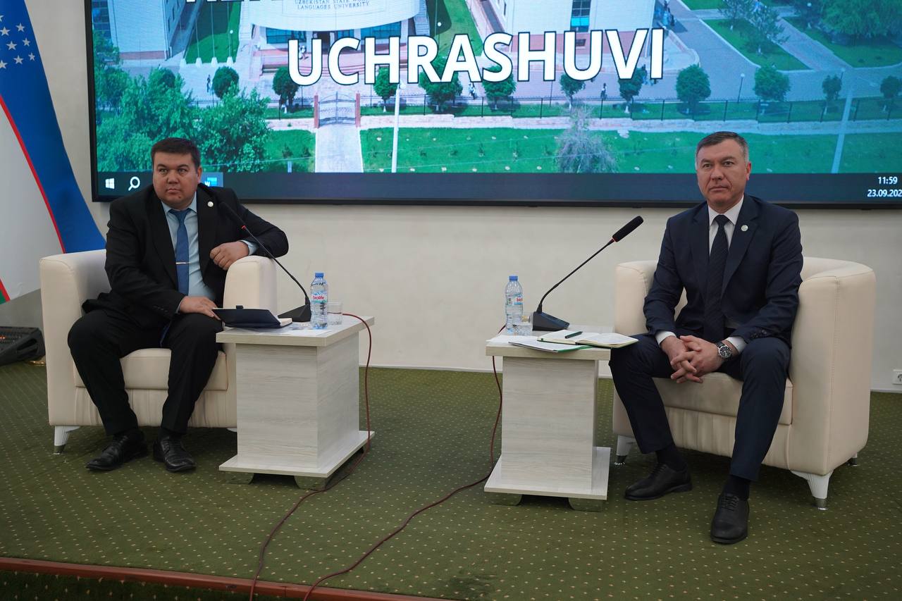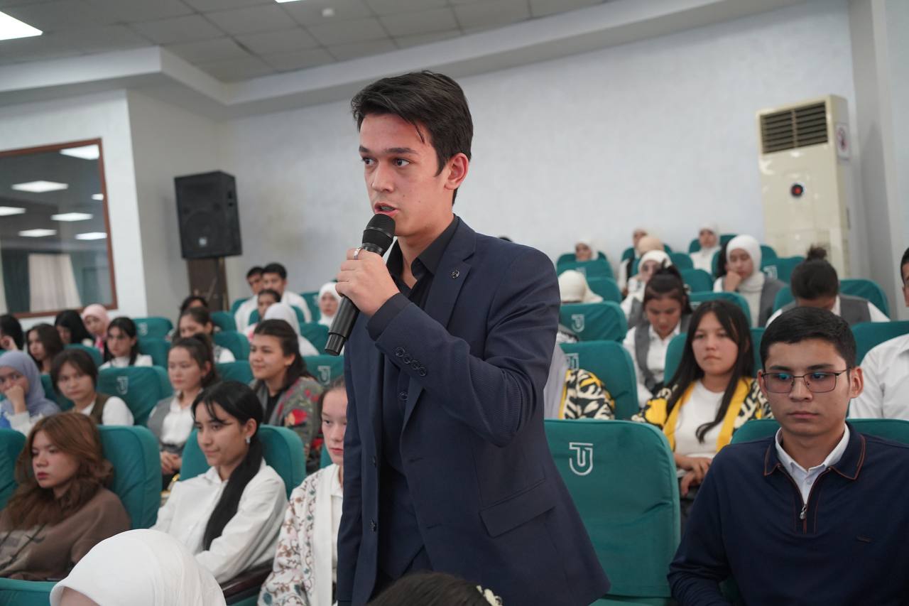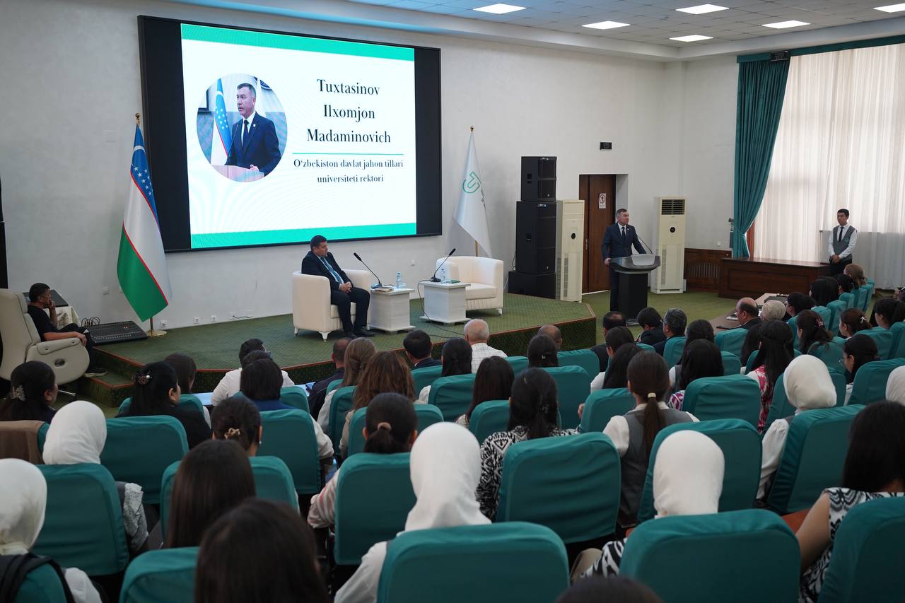 乌兹别克斯坦国家世界语言大学校长伊尔霍姆江·图赫塔西诺夫与东方语言系一年级学生举行了会面。