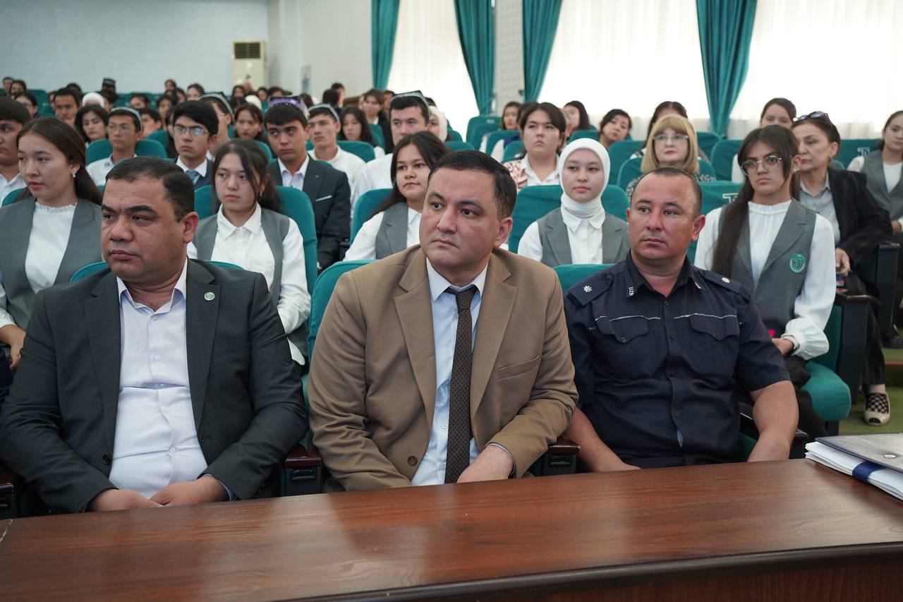 在讲话中,校长伊尔霍姆琼·图赫塔西诺夫介绍了为青年创造的条件、在教学过程中应用的现代方法、与国外高校的合作项目以及支持优秀学生的机制。同时,他号召学生们要积极主动、勇于创新并不断探索,并向他们表达了美好的祝愿。