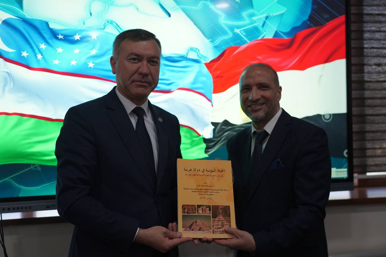 9月23日,乌兹别克斯坦国家世界语言大学与6位来自海外的阿拉伯语专家举行了会谈。会议由校长伊尔霍姆江·图赫塔西诺夫主持,国际合作副校长A. 纳西罗夫、国际合作处负责人X. 尤尔达舍夫以及阿拉伯语言文学系主任K. 卡迪罗娃出席。