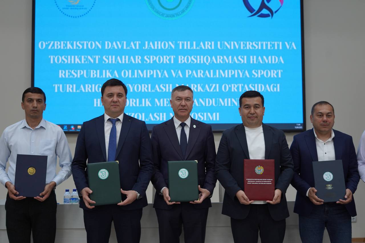 2025年4月16日,乌兹别克斯坦世界语言大学与多家体育机构签署了关于合作与联合开展活动的备忘录。