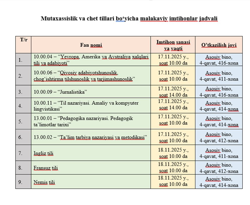 专业和外语资格考试时间表