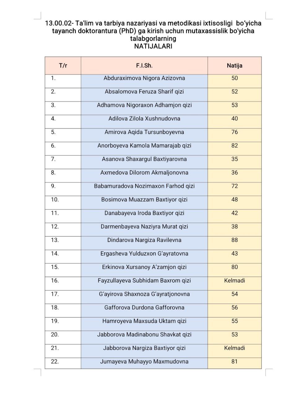 Results of Applicants for the Specialty Examination for Admission to the Basic Doctoral Program (PhD) in 13.00.02 – Theory and Methodology of Education and Upbringing