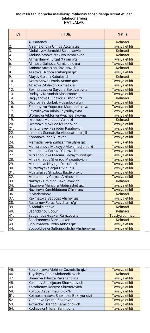 Результаты абитуриентов, допущенных к сдаче квалификационного экзамена по английскому языку