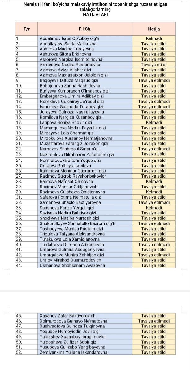 Результаты абитуриентов, допущенных к сдаче квалификационного экзамена по немецкому языку