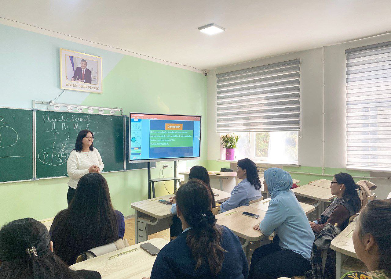 Mashg‘ulot yakunida maktab o‘qituvchilari “CLIL methodologies for teaching English” mavzusining asosiy mazmunini chuqurroq tushunib, o‘z bilimlarini mustahkamlab oldilar.