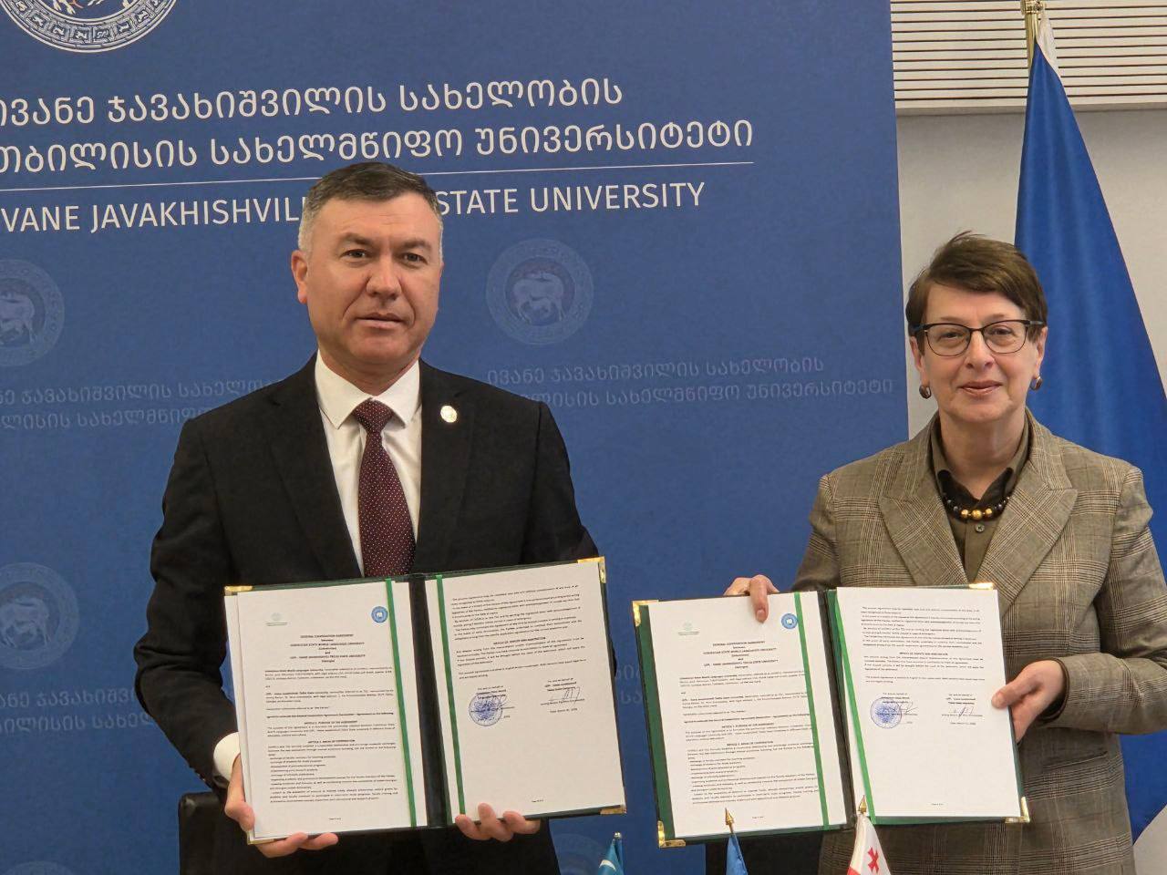 Uchrashuv yakunida O‘zbekiston davlat jahon tillari universiteti hamda Tbilisi davlat universiteti o‘rtasida hamkorlik shartnomasi imzolandi.
