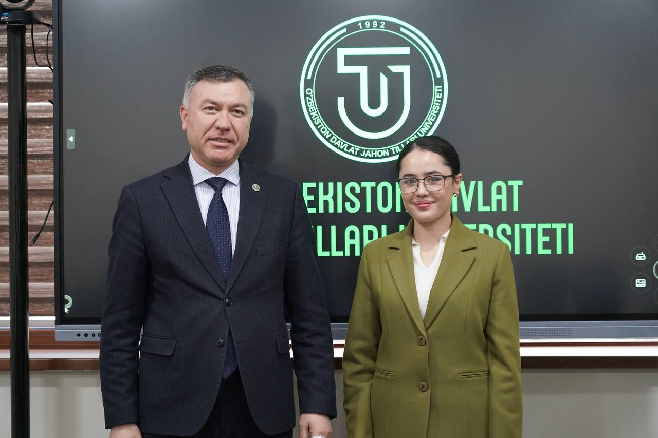 25 февраля ректор Узбекского государственного университета мировых языков Ильхомджон Тухтасинов и представители руководства университета провели встречу с основательницей Aeropath Academy, опытной стюардессой Иродой Мамадалиевой, выпускницей университета, которая работала бортпроводником в авиакомпаниях Узбекистана и Европы и получила приглашение на работу в одну из крупнейших национальных авиакомпаний Объединённых Арабских Эмиратов.