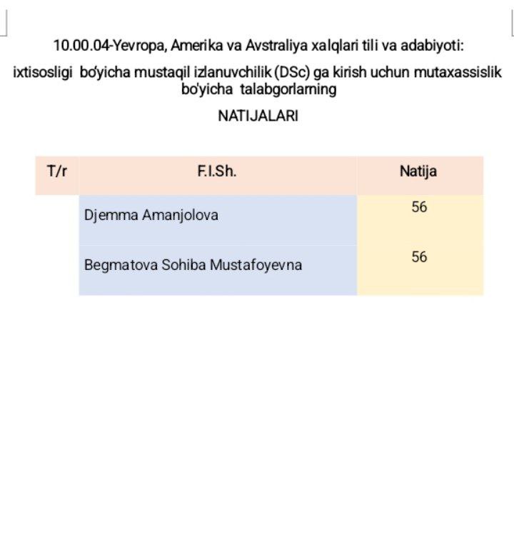 Результаты претендентов по специальному экзамену для поступления в самостоятельную исследовательскую подготовку (DSc) по специальности 10.00.04 – Языки и литература народов Европы, Америки и Австралии