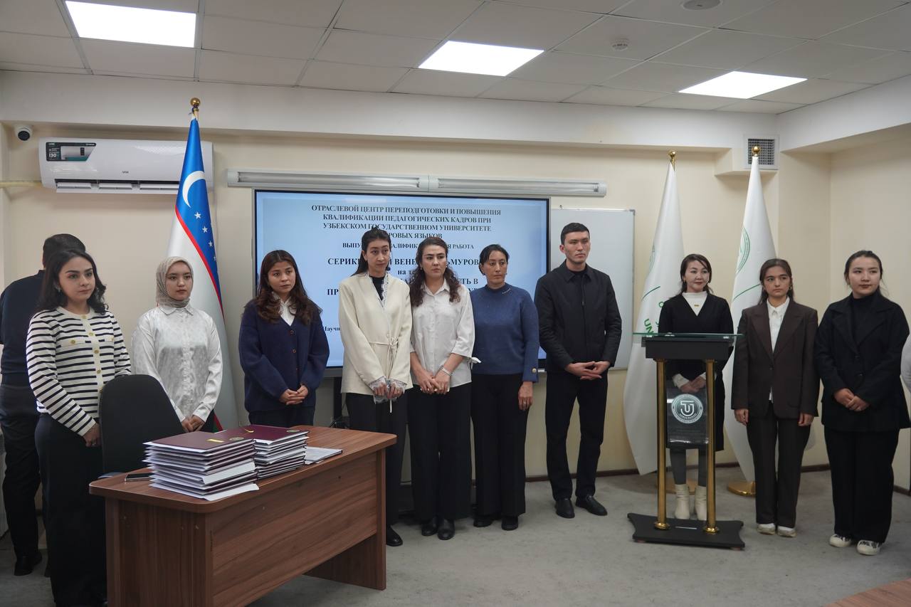 20 января в Отраслевом центре переподготовки и повышения квалификации педагогических кадров при Узбекском государственном университете мировых языков состоялась защита выпускных квалификационных работ слушателей курсов педагогической переподготовки по направлению «Иностранный язык» (русский язык).