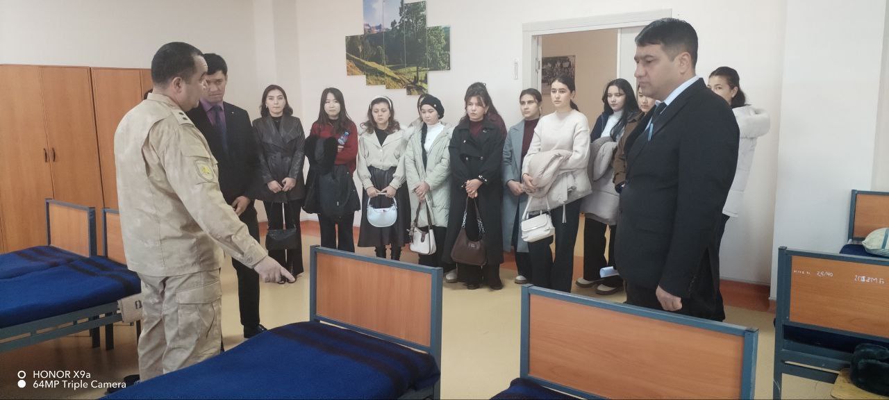 В связи с 34-й годовщиной образования Вооружённых Сил Республики Узбекистан и 14 января — Днём защитников Родины для студентов была организована духовно-просветительская экскурсия в Центральную базу материально-технического обеспечения Национальной гвардии Республики Узбекистан.