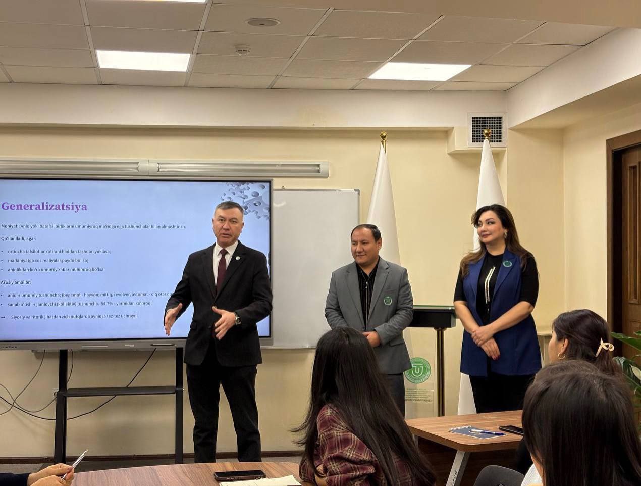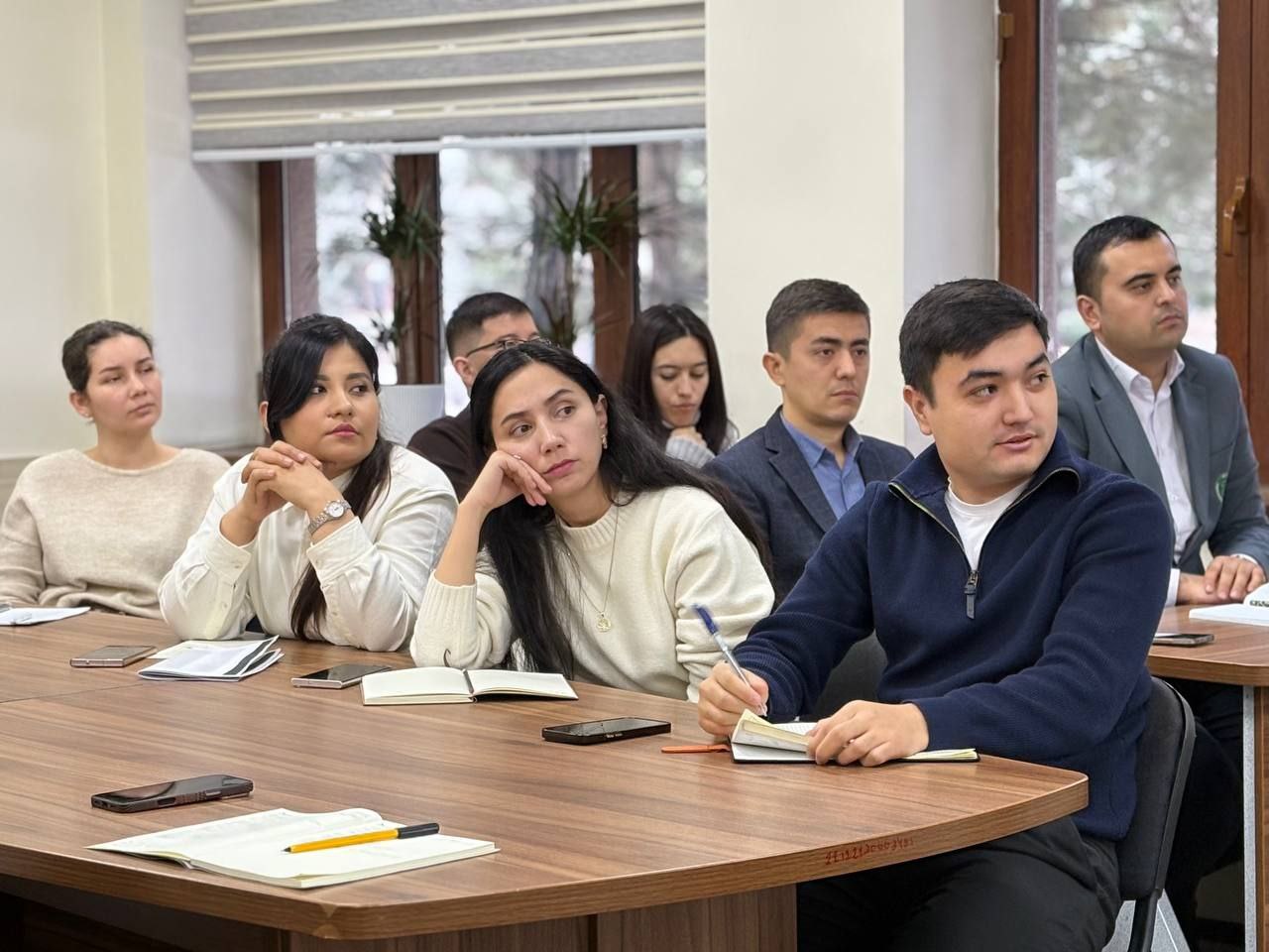 В последний день курса занятия вели опытные специалисты в области синхронного перевода — Якубов Бахтиёр Салахиддинович и Мустанова Шахноза Рустамовна, обладающие многолетним профессиональным опытом, глубокими теоретическими знаниями и умением эффективно сочетать их с практической деятельностью. В ходе занятий последовательно рассматривались важные теоретические и практические вопросы, связанные с техническими аспектами синхронного перевода, культурой работы в кабине, оперативной обработкой информации, стратегическим подходом и обеспечением терминологической точности.
