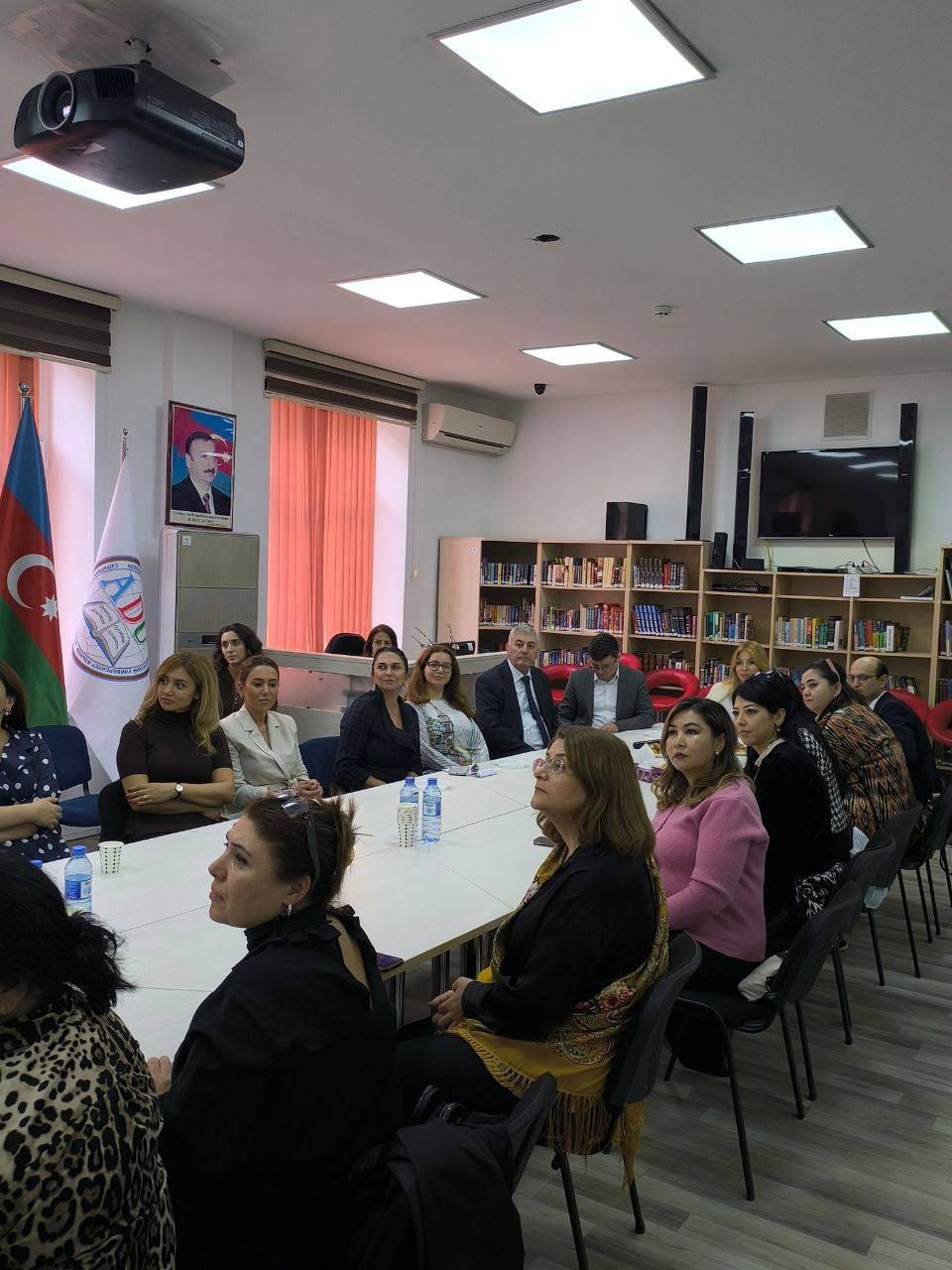 27 ноября по инициативе профессорско-преподавательского состава кафедры мировых языков факультета международных отношений и регионоведения Азербайджанского университета языков под руководством доктора филологических наук, профессора Наргиз Сеидовой была организована встреча между преподавателями Азербайджанского университета языков и преподавателями кафедр общего языкознания и прикладных наук факультета английского языка №1 Узбекского государственного университета мировых языков.
